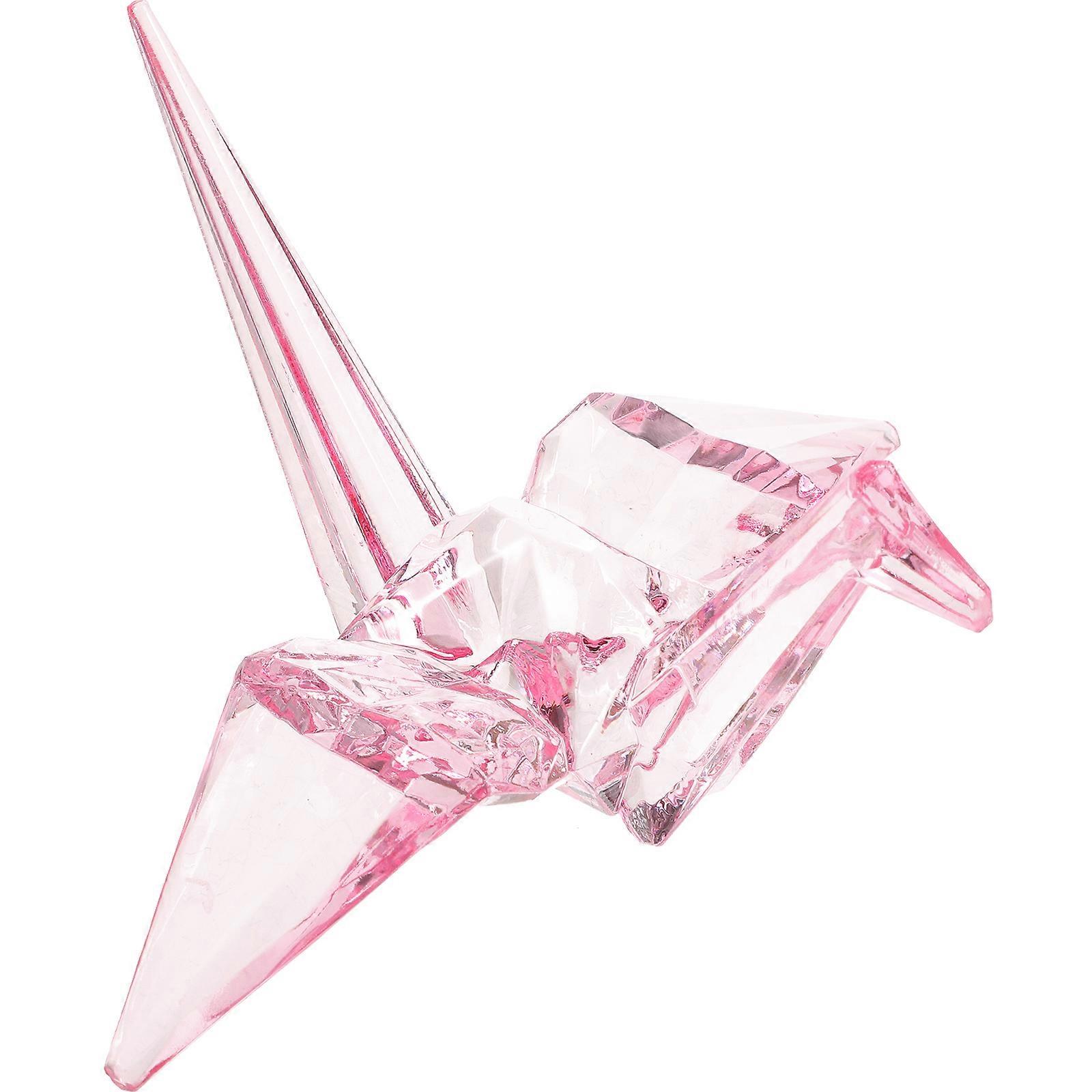 Pink Acrylic Origami Crane Sculpture Elegant Modern Decoration for Kids Birthday Gift 7.5 Inches