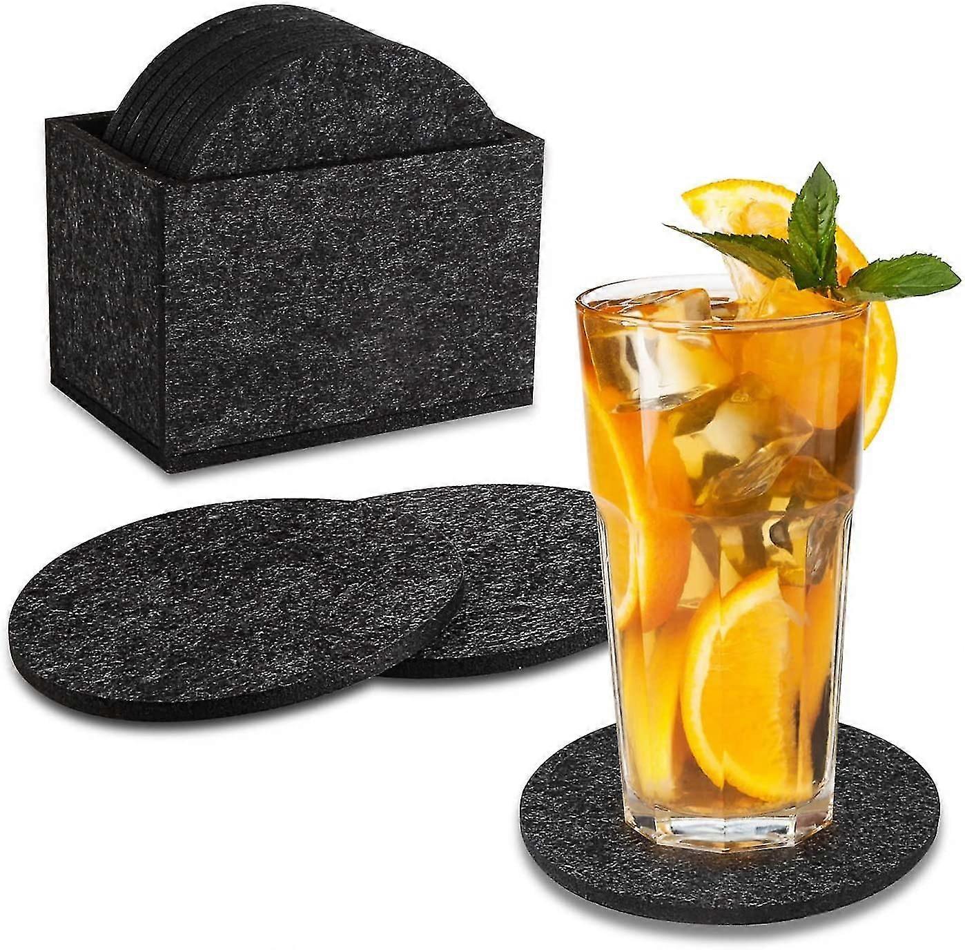 Felt Coasters, Set Of 10 Coasters Glasses, Glass Coasters With Storage Box, Round Drink Coasters, Felt Co