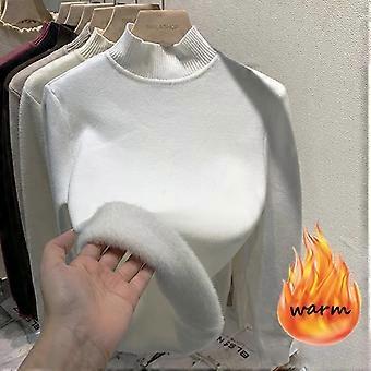 الياقة المدورة ضئيلة سميكة بالإضافة إلى سترة مخملية نسائية 2023 الشتاء سميك المخملية المبطنة قمم محبوكة دافئة كنزة أساسية محبوكة جديد