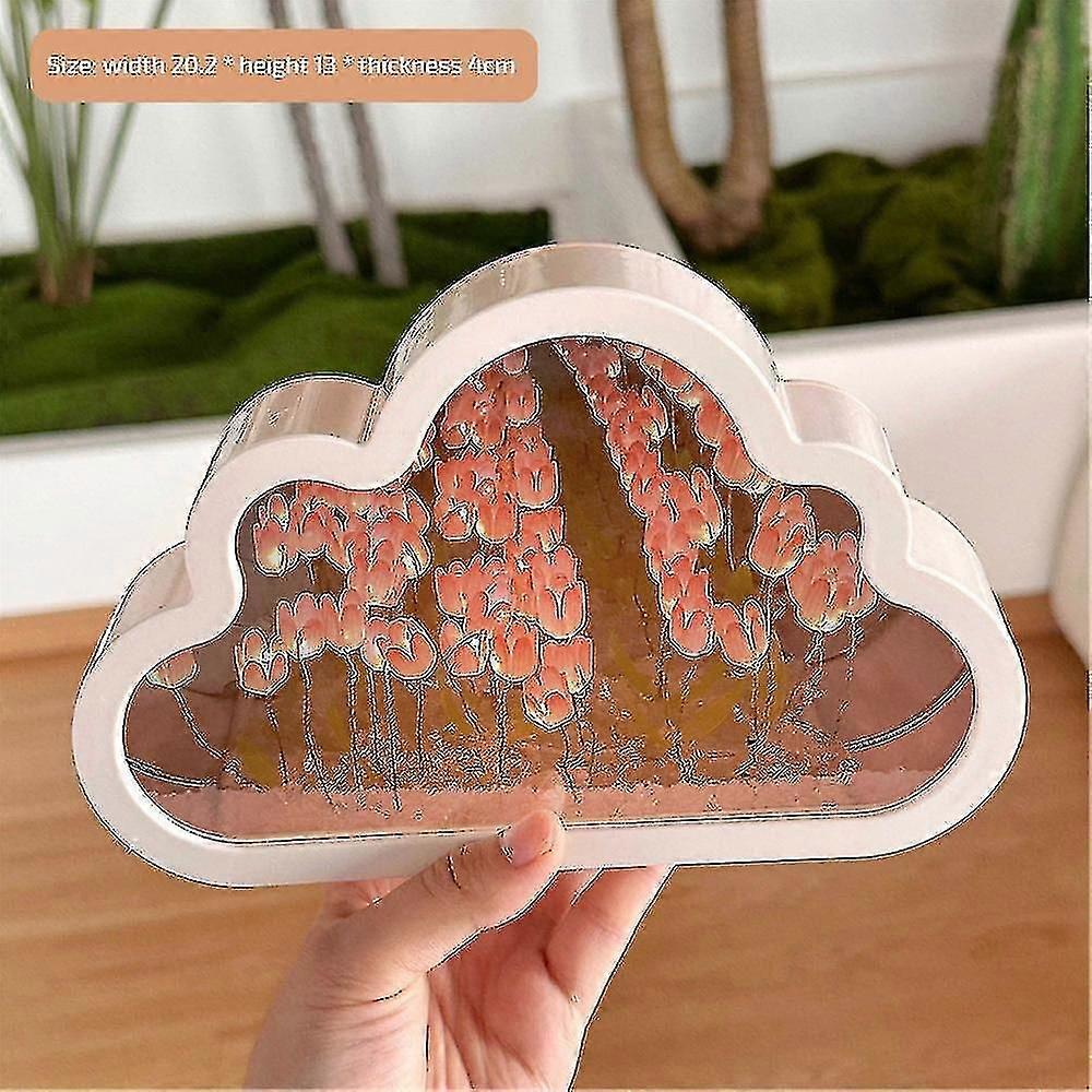 Handmade Tulip Cloud Mirror Night Light - DIY Bedroom Decor Lamp, Gift for Women