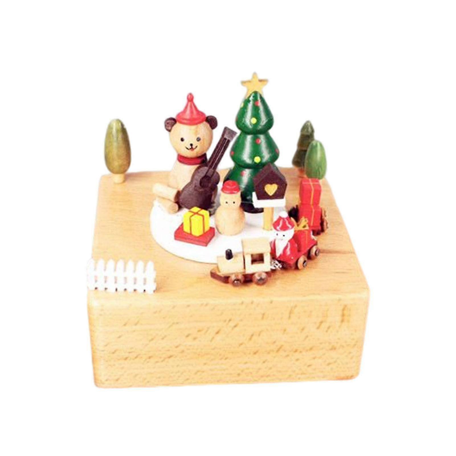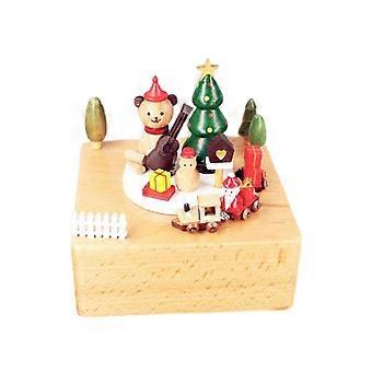 Handmade Wooden Rotating Music Boxes Christmas Music Box Hand Painting Mini Square Music Box Gift