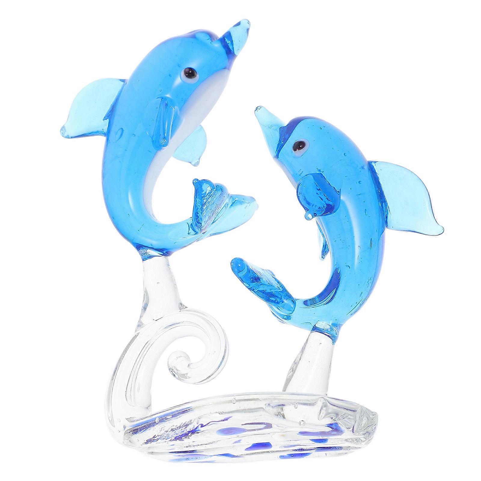 Hand Blown Glass Dolphin Sculpture Gift Dolphin Shape Table Arrangement Synthetic Material 8.50X8.00X3.30CM 1Pcs