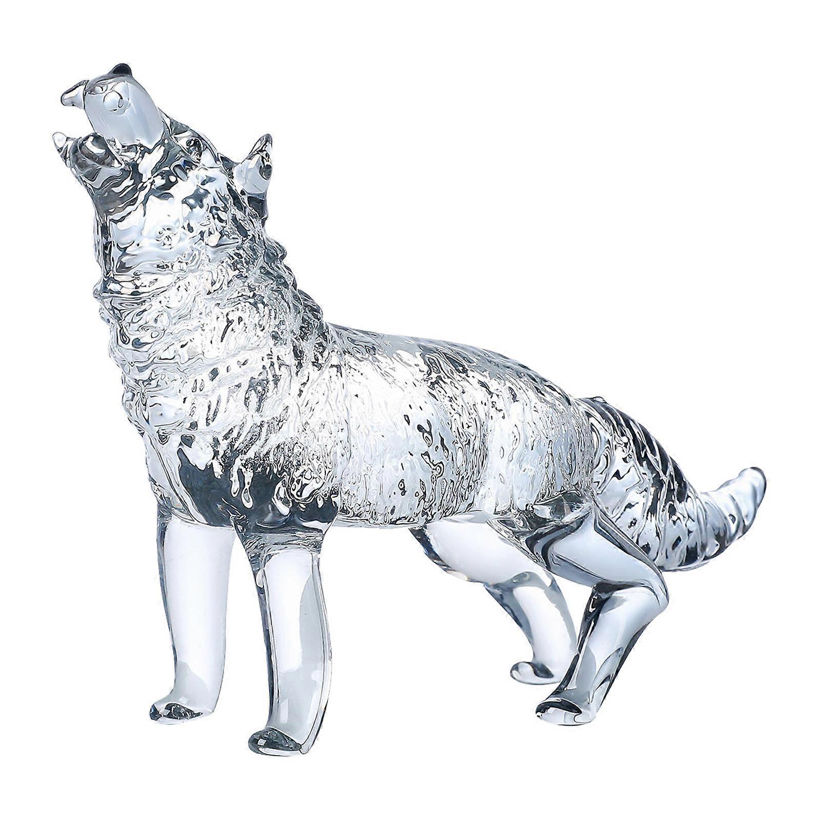 Hand Blown Crystals Glass Wolf Figurine Howlings Wolf Statue Animal Sculpture for Home Decoration Smoke grey