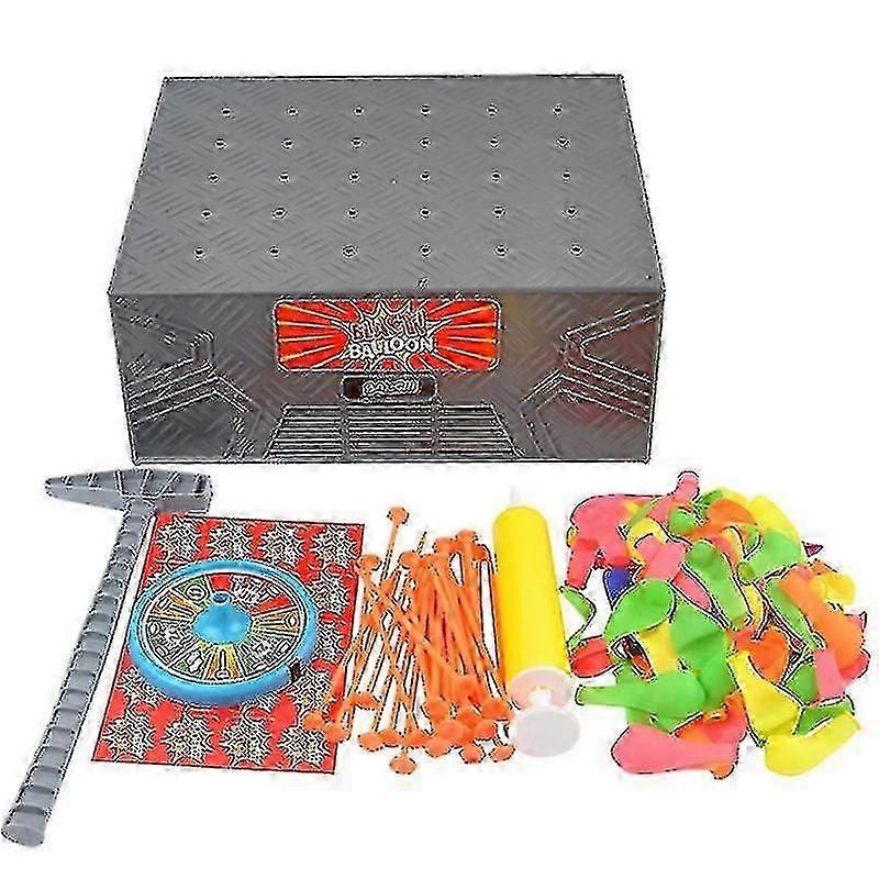 Feature:Use balloon Inflator and the easy tie clip for easy set upPlace the 1x balloon per player inside the blast boxFollow the instructions on the spinner based on where the arrow lands.Pass the hammer and spinner to the next player.Specification:Material: PlasticQuantity: 1 set Color: As the picture showPackage List:1 x Blast Box1 x Hammer1 x Balloon Inflator20 x Pins1 x Spinner90 x Balloons30 x Easy Tie Clips
