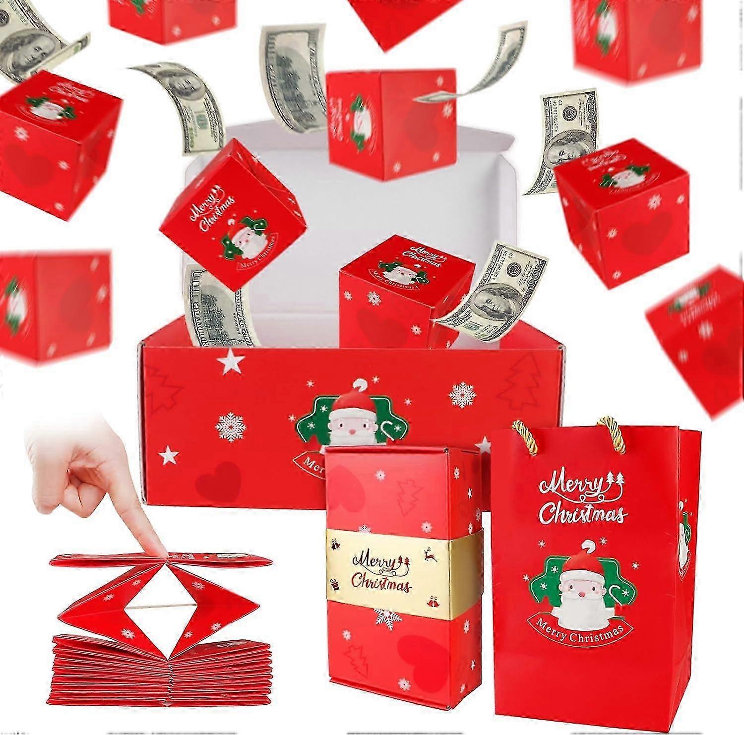 Surprise Box Gift Box for Money: Package Including 10 x bouncing boxes, 1 x surprise gift box, 1 x wrapped card, 1 x gift bag. No instructions for assembly are required, it only takes 1 minute to set up with ease.Christmas Surprise Gift Box: The surprise bouncing box is made of sturdy and quality paperboard. Exercise your creative juices, just according to your own ideas to DIY it, and bring the effect of delight and surprise for the recipient.How To Use: You can Insert cash confetti photo greeting cards, in the gap between the box and the box, place rings, necklaces, bracelets, watches, perfumes or other small gadgets at the bottom of the birthday surprise box. Note that it's not a disposable item, recommended to test the product upon receipt.Surprise Gift Box Explosion: Who would have thought that a regular gift box could hold such a delightful surprise! Watch as even bystanders are filled with joy and excitement when they see these pop-up boxes in action!Wide Use: Imagine the looks on their faces when they open the box and find a hidden gift inside. Be it for Parent's or Children's birthdays, Christmas parties, or friends' weddings, these pop-up boxes will create an atmosphere of excitement and wonder, making your celebrations truly special. Get ready to witness the joy and happiness these boxes bring!Package Including10 x bouncing boxes1 x surprise gift box1 x wrapped card1 x gift bagNo instructions for assembly are required, it only takes 1 minute to set up with ease.