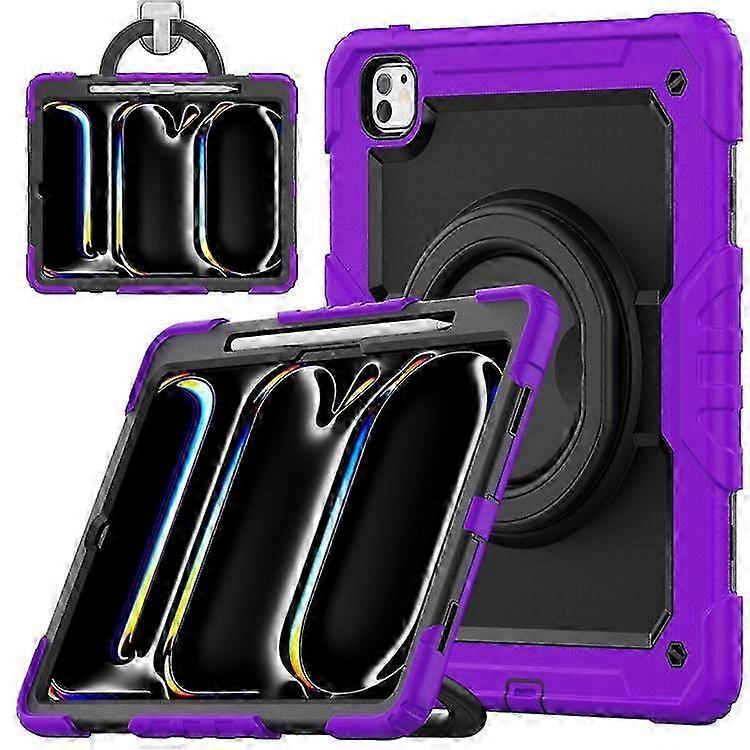 iPad Pro 13 (2024) Kickstand Case with PC+Silicone Tablet Cover and Shoulder Strap - Compatible Accessory