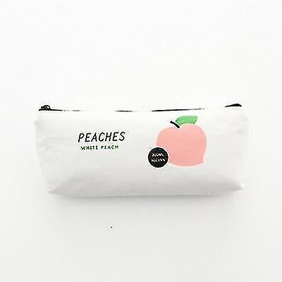 White Cute Fruit Peach Pencil Casee For Stationery Canvas Pen Bag