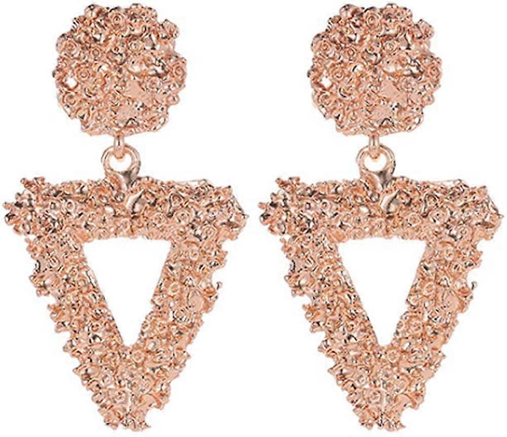 Gorgeous geometric-shaped statement earrings featuring hypoallergenic pierced studs, Easy to Put on And Off,make you charmer and elegant, beautiful and attractive.Women geometric large trilateral dangle earrings with Raised textured design open are very trendy for today\u2019s designs and go well with most bohemian chic and fashion outfits.Stunning punk bohemian drop earring with metal large trilateral and round ,simple and elegant are very trendy for today\u2019s designs and go well with most bohemian chic and fashion outfits.Elegant simple rose gold dangle earrings total length: 2.16 inches,wide:1.18inches, weight: 16.0 grams/pair.Show your charm.These are lovely! So you\u2019ve gotten so many compliments!Package: This fashion beautiful geometric jewelry earrings comes with a gift box . Perfect item for your girlfriend, fiancee, wife, lover, mom, daughter, aunt and friends. It is also a good choice for anniversary day, birthday, wedding, party, date, New Year\u2019s Day, Valentine\u2019s Day, Thanksgiving Day, Christmas Day, Boxing Day or other special occasions.