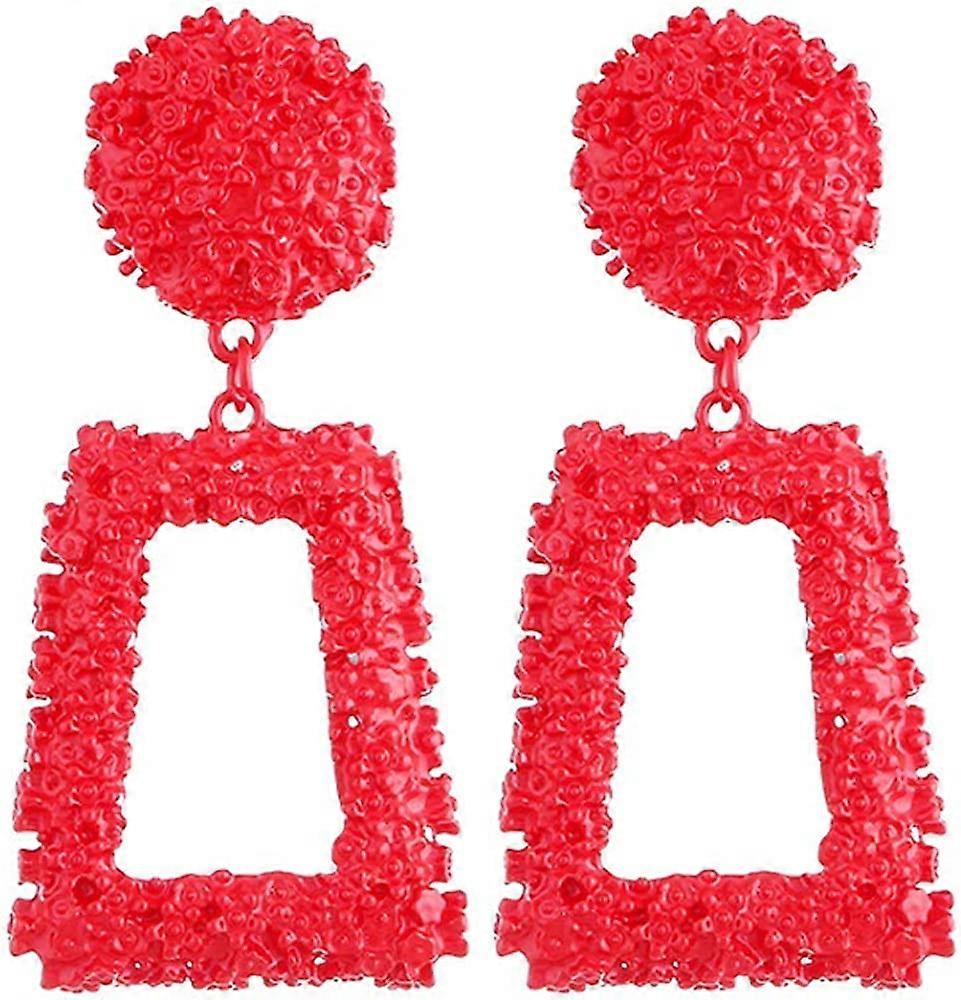 Hollow Geometric Large Square Dangle Earrings Metal Statement Drop Earrings Punk Bohemian Raised Textured Design Big Hoop Earrings for Women Fashion J