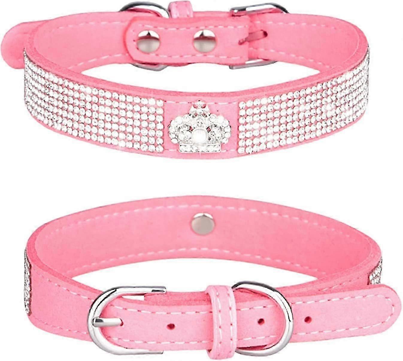 Rhinestones Dog Cat Collar Bling Diamond With Rhinestone Crown Decoration For Small Medium Large Dogs (pink, S) Pink S