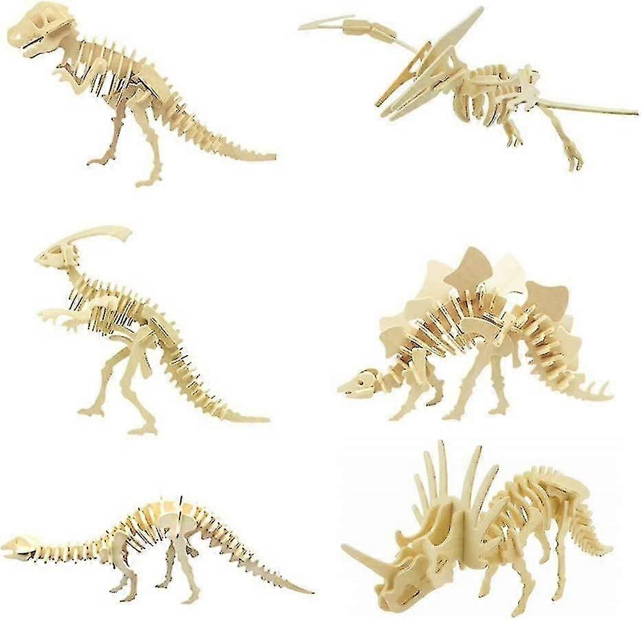 3d Wooden Dinosaur Puzzle - 6 Piece Set Wood Dinosaur Skeleton Model Puzzle - Diy Wooden Crafts 3d Puzzle - Stem Toys Gifts For Kids And Adults