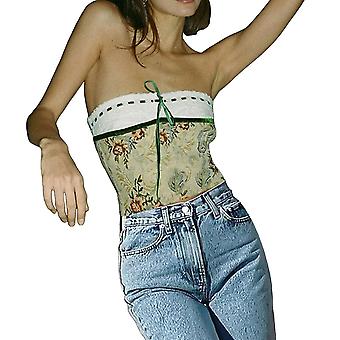 Latest Women's Casual Floral Print Lace Up Back Sleeveless Strapless Bandeau Tube Crop Corset Top