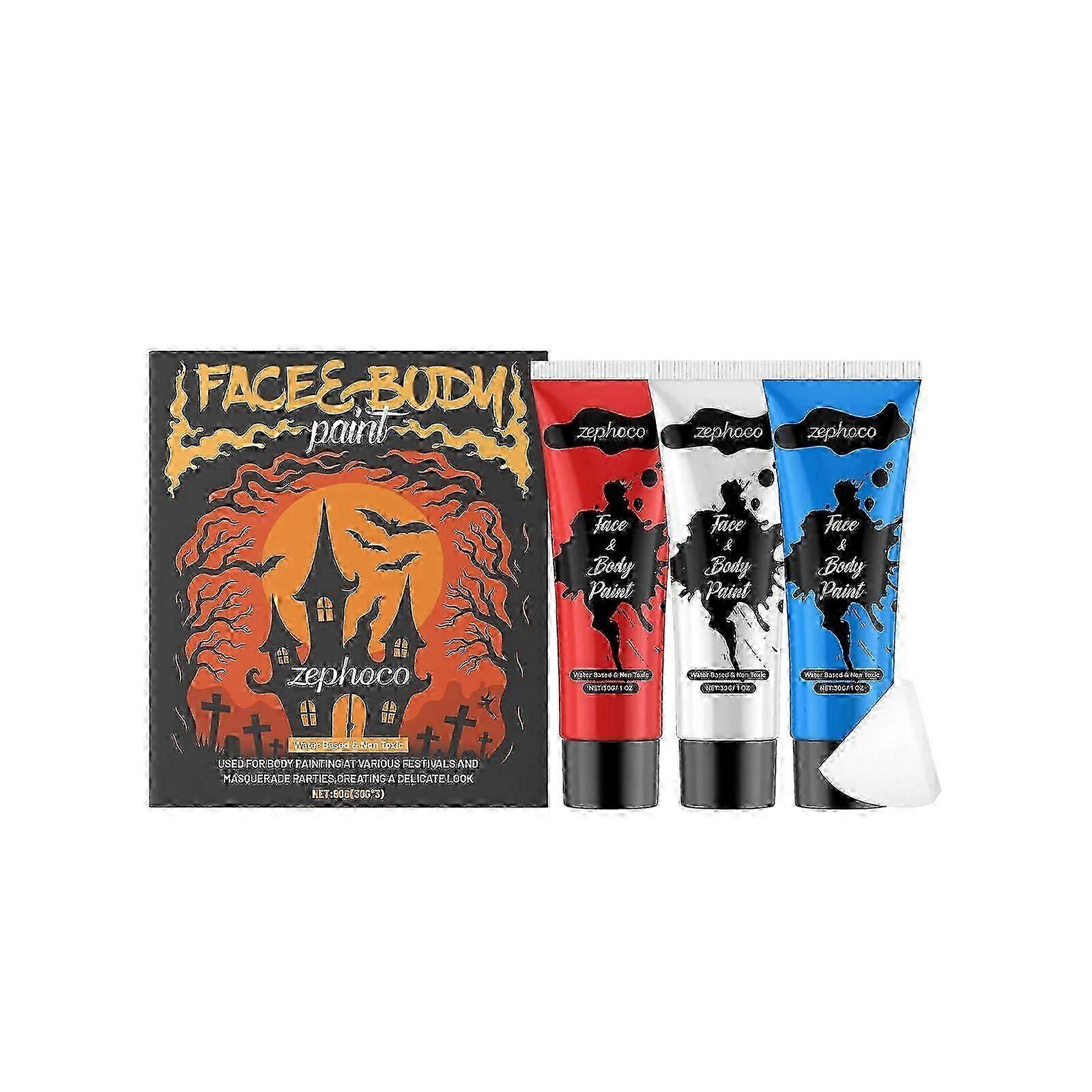 Red White Blue Face Body Paint, Face Color Body Paint, Halloween Makeup Set with Makeup Brush, Neon Face and Body Paint for Halloween Fancy Dress Part