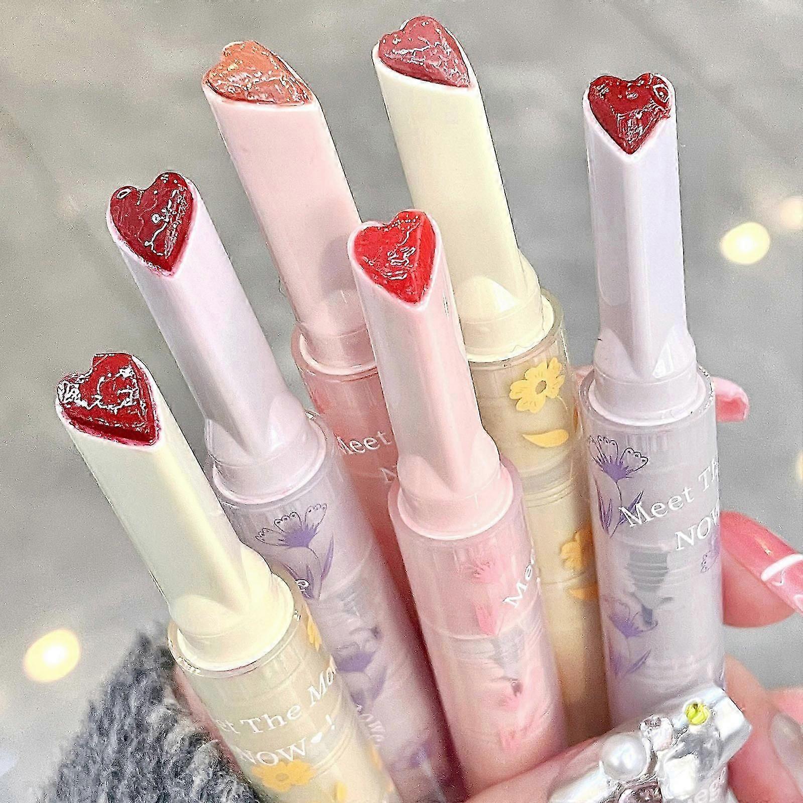 6pcs Jelly Lipstick, Tinted Lip Gloss Heart Shape Lip Stain, Mirror Hydrating Jelly Love Lipstick, Long Lasting Moisturizing Non-sticky