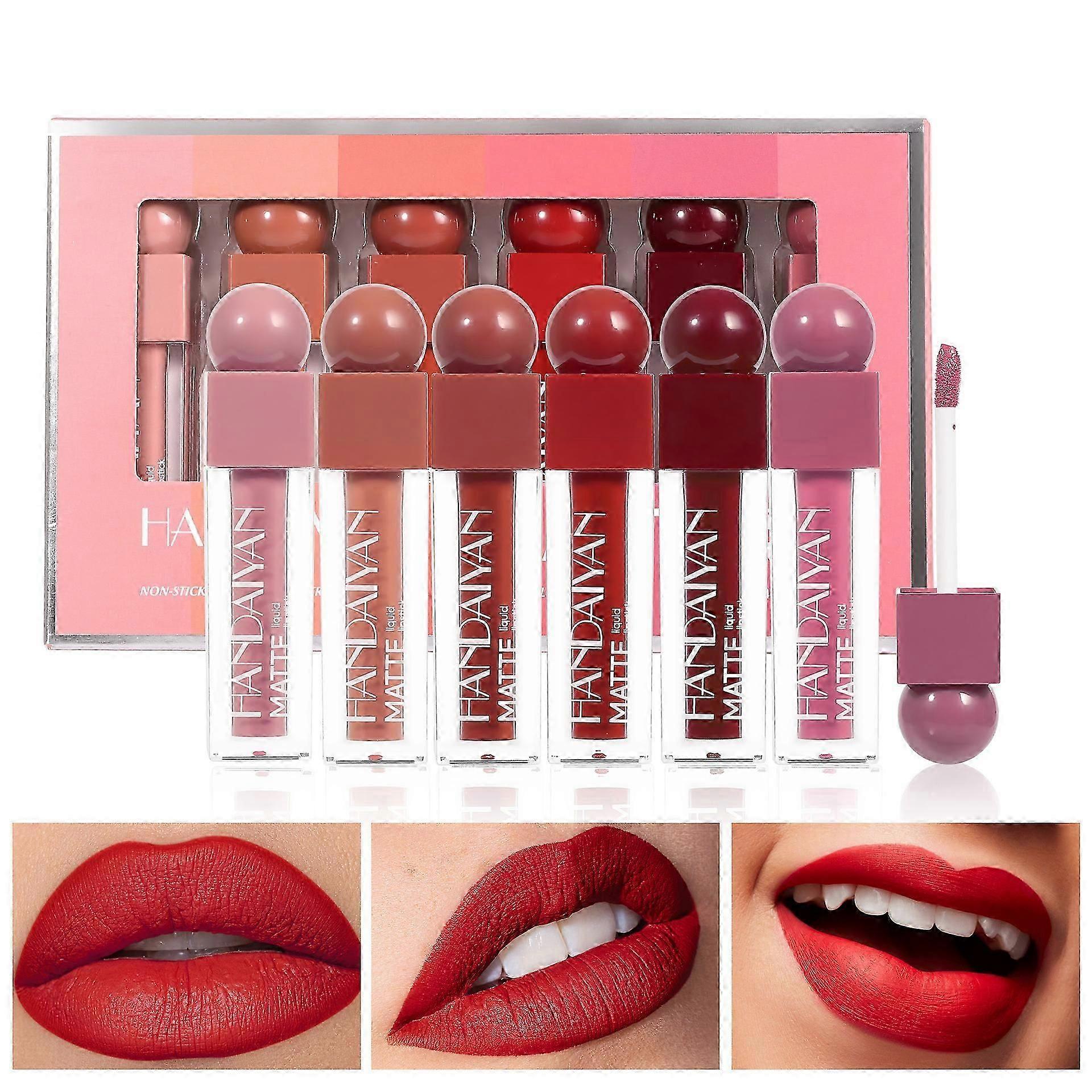 6 Colors Nude Matte Lipstick, Nudes Velvety Lip Gloss Makeup Set, 24 Hour Long Lasting Waterproof Non-Stick Cup Not Fade,Nude Lipstick Set for Women