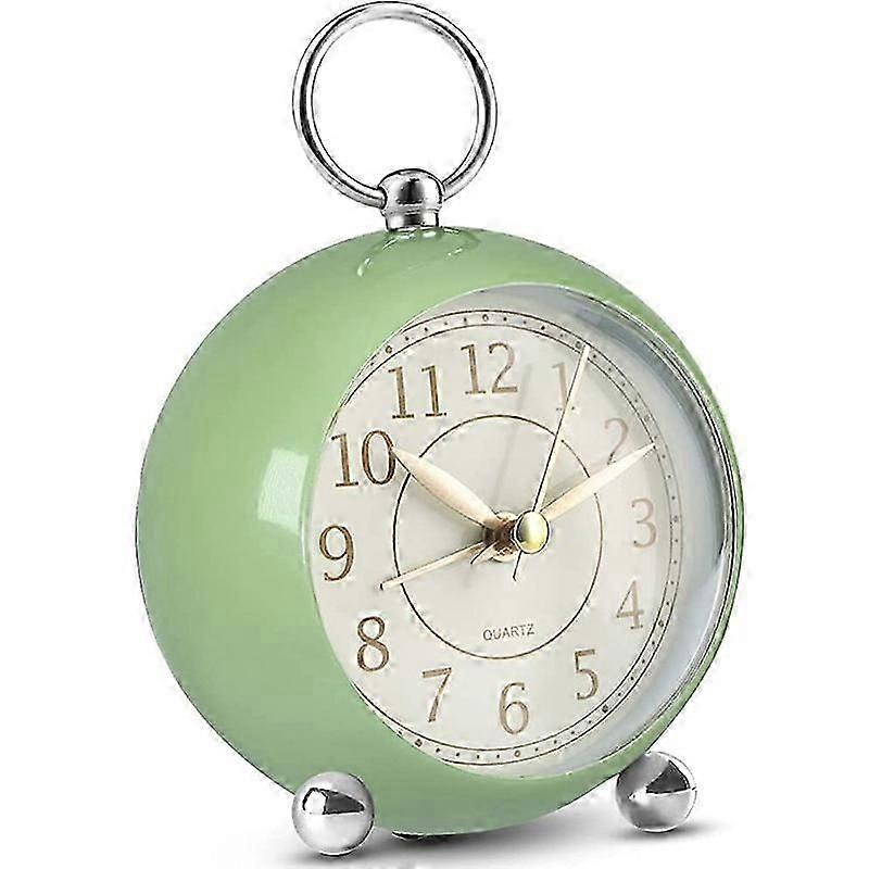 (Green)Retro Analog Alarm Clock, Double Bell, Non Ticking Bell, Vintage, Battery Operated, Quartz Table Clock, With Night Light, For Kids