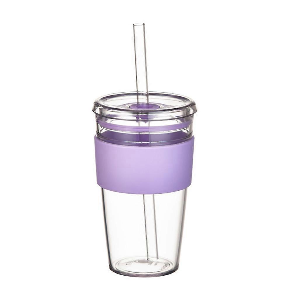Drinkware & Tea Sets 450ml Tritan Straw Cup Water Bottle Coffee Mug with Sleeve Portable Drinkware for Home Office (No FDA, BPA-Free) Purple
