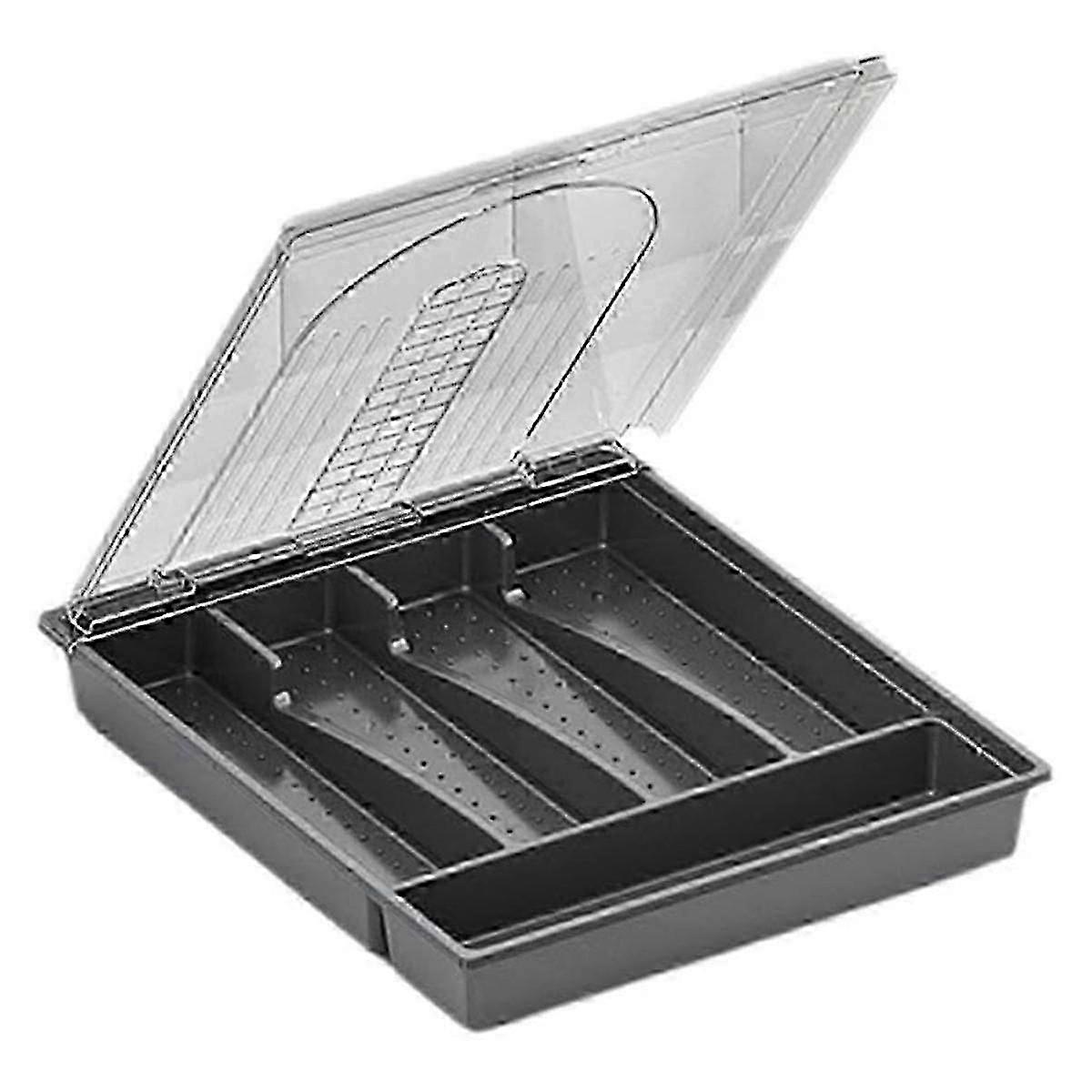 Plastic Cutlery & Flatware Organizer with Lid - Covered Utensil Storage Box with Compartments for Kitchen Drawer A