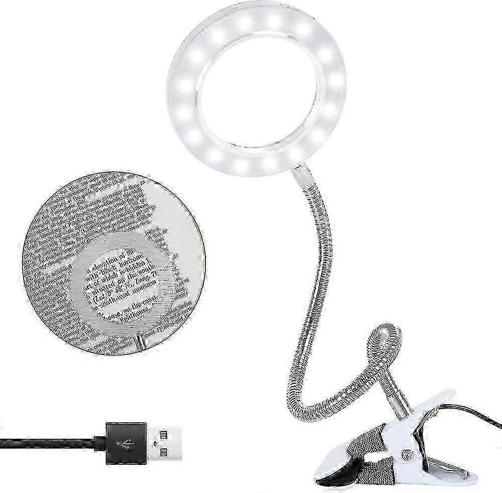 2 in 1 table lamp and with Dual-purpose light, ideal for reading, precision work, hobbies and crafts, soldering, mending inspection and maintenance work, also used as a desk lamp. USB Powered For Convenient Use- This magnifier with a USB cable is easy to connect connected to a power source, wall adapter or computer when the LED lights are needed. Battery does not need to be replaced. Ideal for unlimited use. Flexible PositionMagnifying lamp with flexible metal gooseneck and adjustable clip, rotates 360 degrees. You can place the lamp wherever your eyes need it most. The length of the gooseneck is about 38cm. Application Ideal for reading books, sewing, crafts and hobbies such as model making, jewelry design, soldering, examining stamps, coins, miniature engraving, electronic repairing, etc.