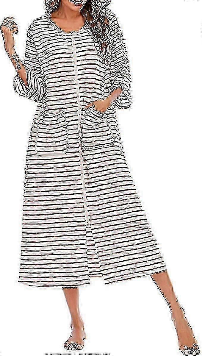 Womens Robes Dressing Gowns,women Zipper Robe Short/long Sleeve Housecoat Soft Zip Up Bathrobe With Pockets Nightwear Sleepwear