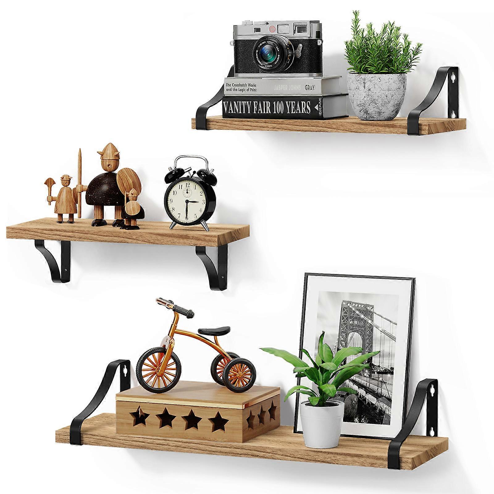 Bedroom Wall Shelves 3 Tiers Wall Floating Shelves Modern Display Storage for Living Room Natural Wood 1Set