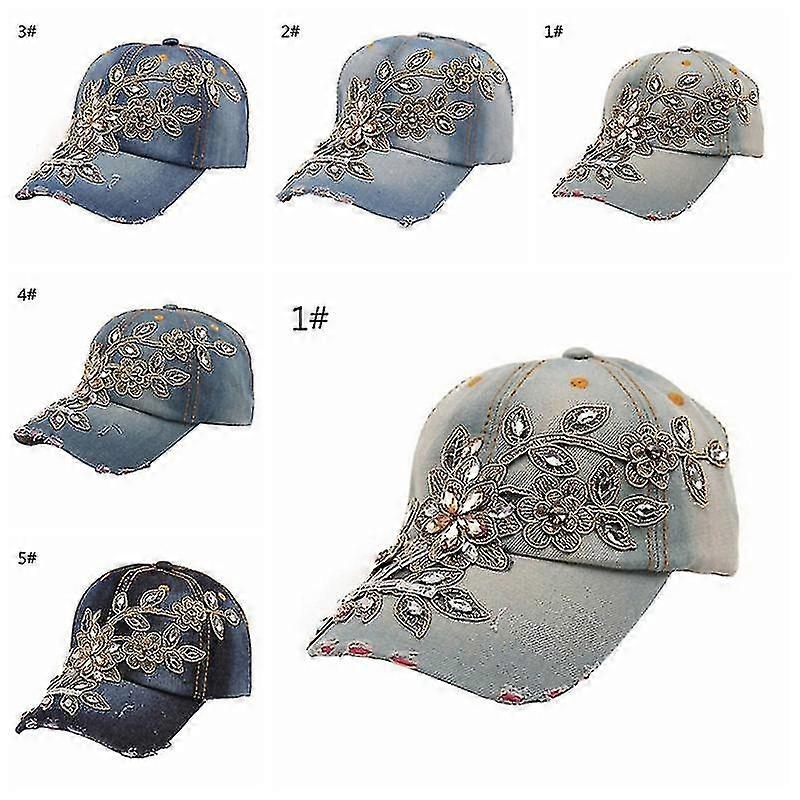 Fashion Women Men Rhinestone Crystal Denim Hat Bling Baseball Caps Adjustable