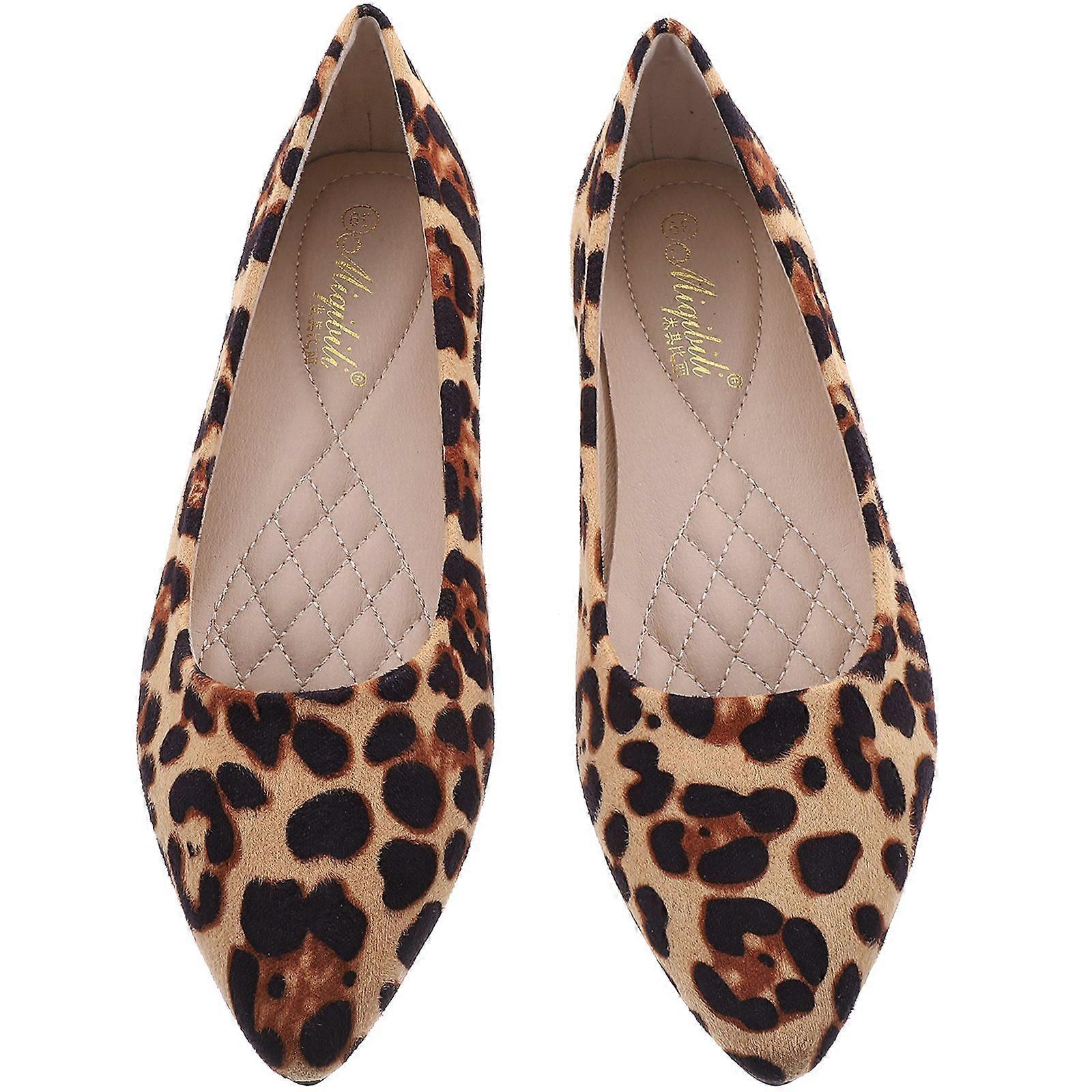 Fashion Leopard Shoes Flat-heeled Shoes Pointed Shoes Leisure for Women Ladies (Khaki Leopard, Size 39)