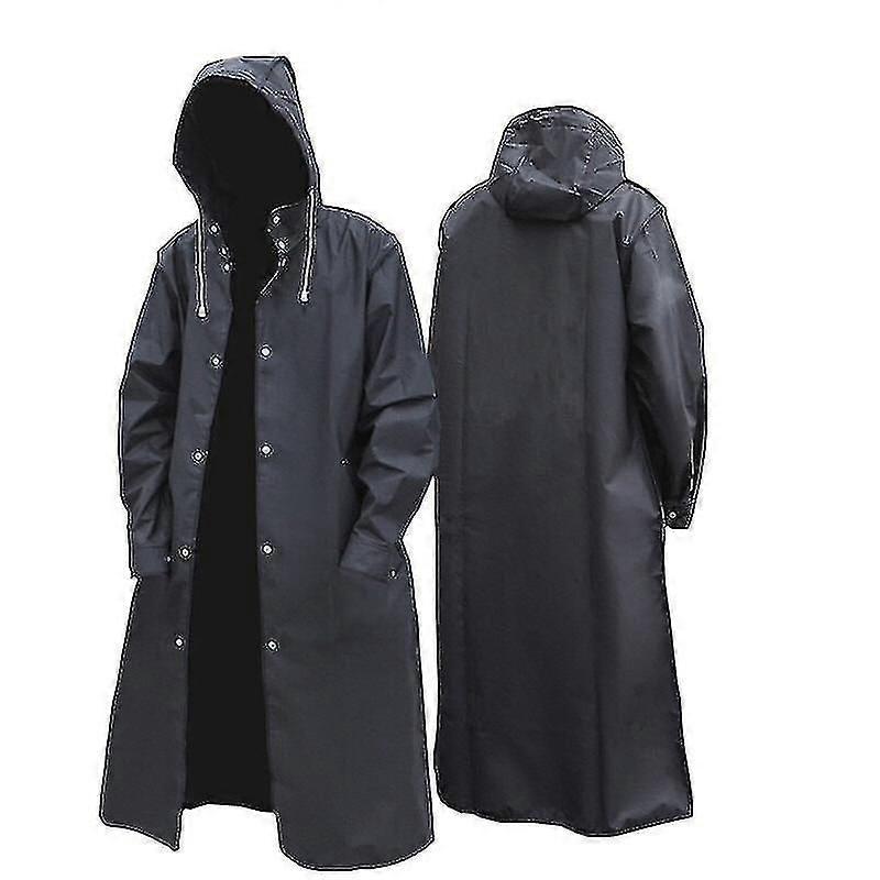 Black Fashion Adult Waterproof Long Raincoat Women Men Rain Coat Hooded For Outdoor Hiking Travel Fishing