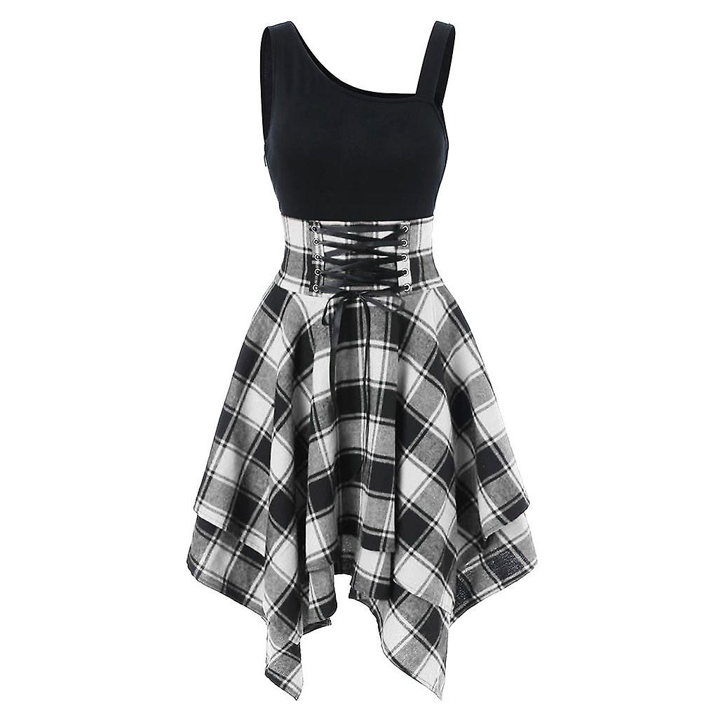 Fashion Irregular Bandage Plaid Dress Women Sleeveless Sexy Tunic Summer Beach Sundress Evening Party Dresses Vestidos de fiesta
