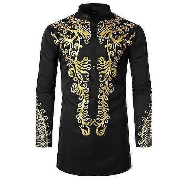 Fashion Hot Stamping Shirt Muslim Casual Pullover Long Shirt African Style Robe with classic slim fit design. This collared shirt is suitable for professional, dating, vacation or as a gift for your boyfriend, son or father for Christmas, Valentine's Day or Father's Day. This classic dress shirt is perfect for weddings, work, business wear, office, formal shirts or everyday casual wear for men.
