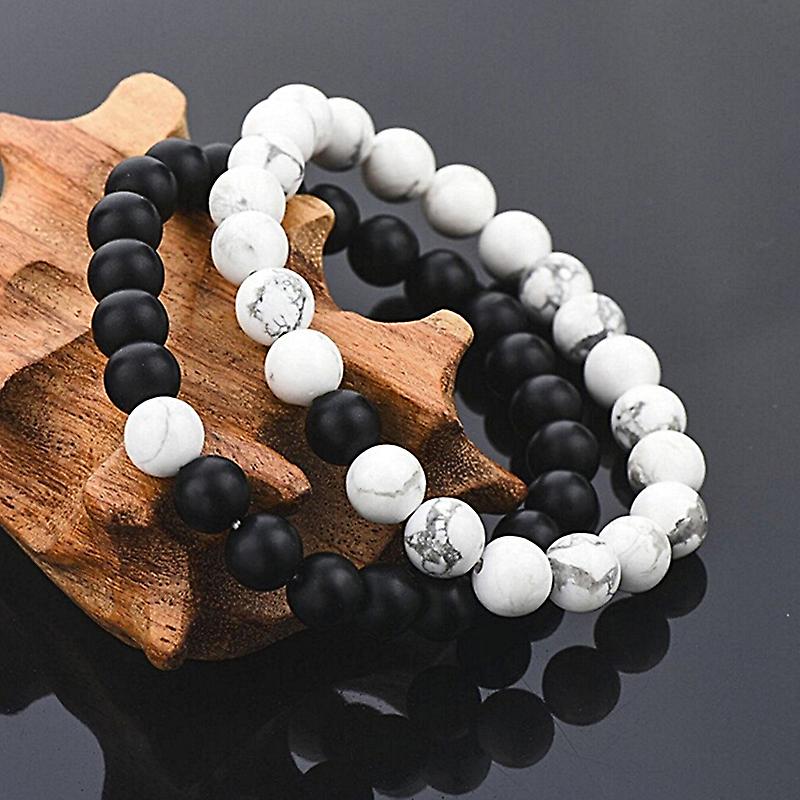 Fashion 2pcs Couples His & Hers Distance Bracelet Lava Bead Matching Yinyang Lovers Gift