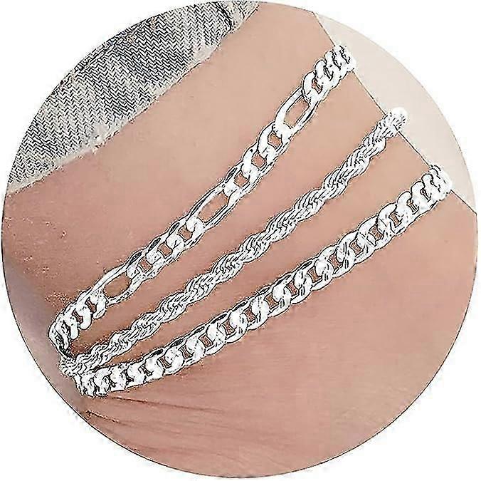 Sterling Silver Ankle Bracelets for Women Strong Lobster Clasp - Cuban Link, Figaro, Rope, Flat Mariner, Snake Herringbone