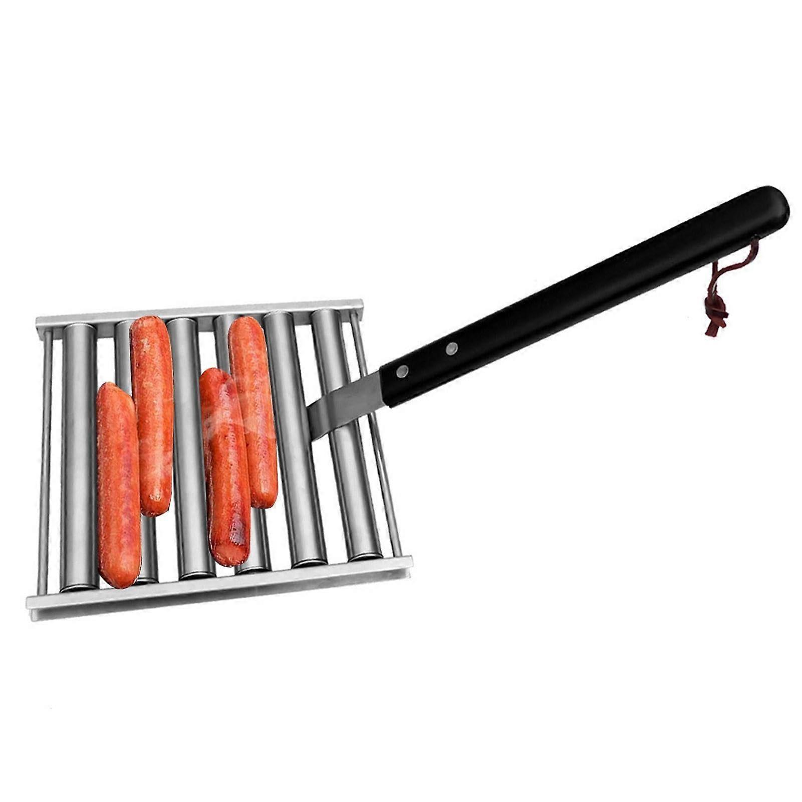 Barbecue Hot Dog Roller with 5 Capacities, Wooden Handle, Stainless Steel