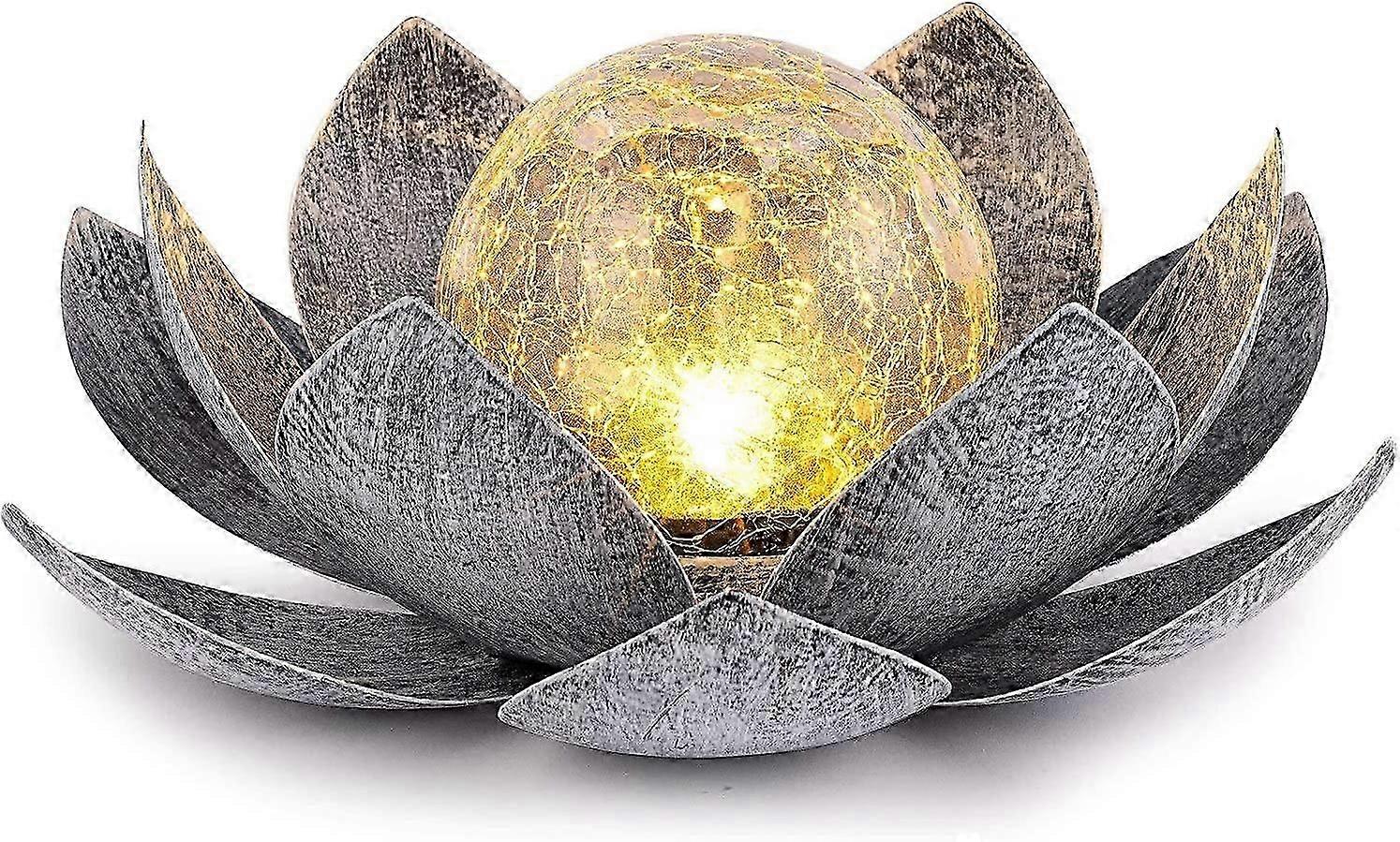Solar Lights Outdoor Garden, Crackle Globe Glass Lotus Decoration, Waterproof LED Metal Flower Lights for Patio,Lawn,Walkway,Tabletop,Ground