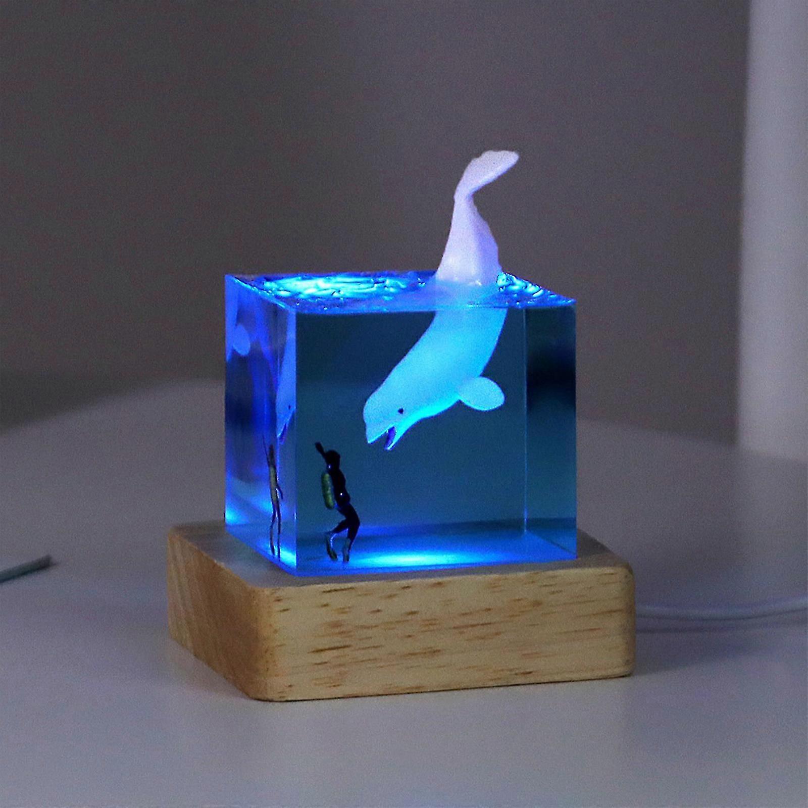 Cube LED Lights for Bedroom Shark Diver Night Light, Seabed Diver Whale Resin Ocean Night Lights for Desktop
