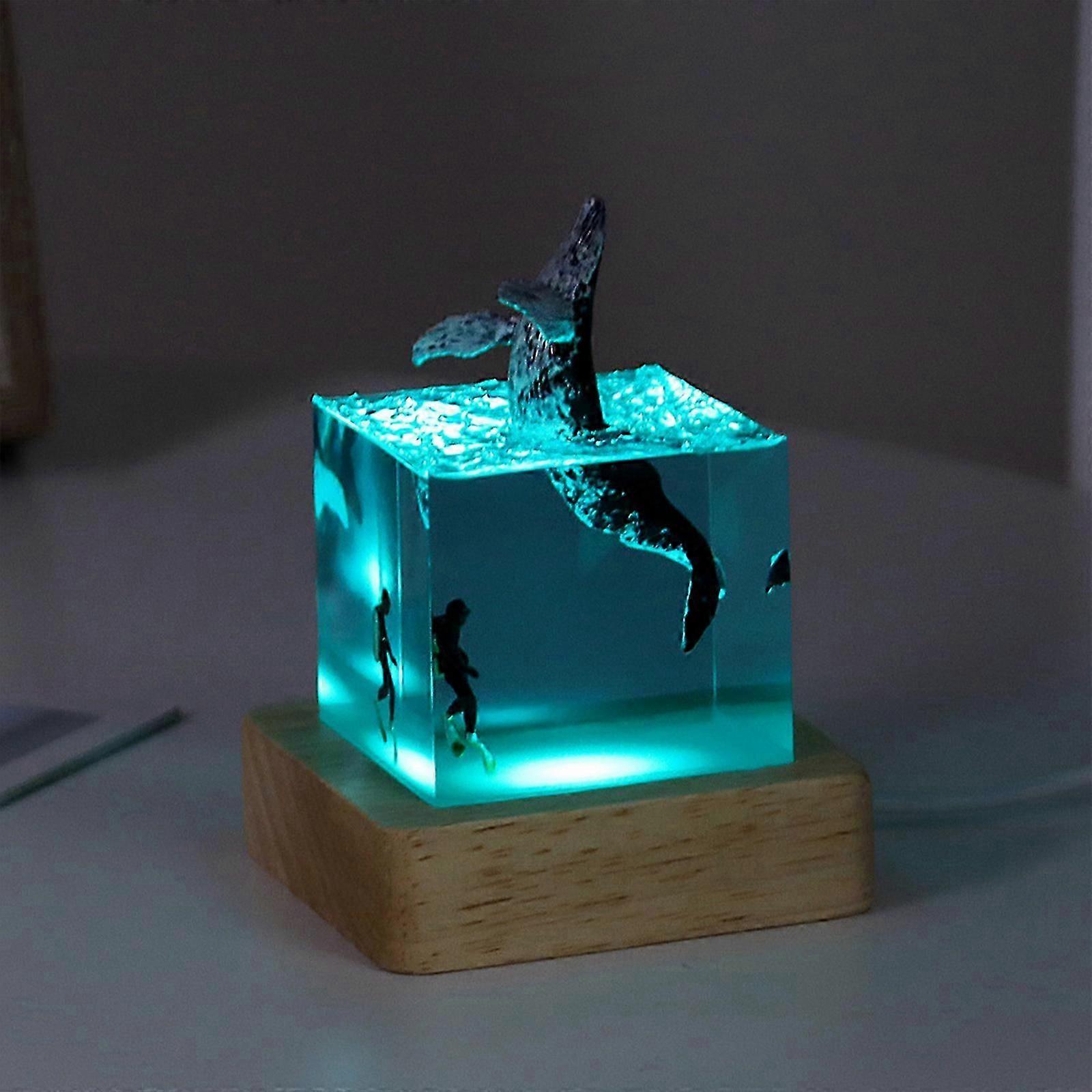 Cube LED Lights for Bedroom Shark Diver Night Light, Seabed Diver Whale Resin Ocean Night Lights for Desktop