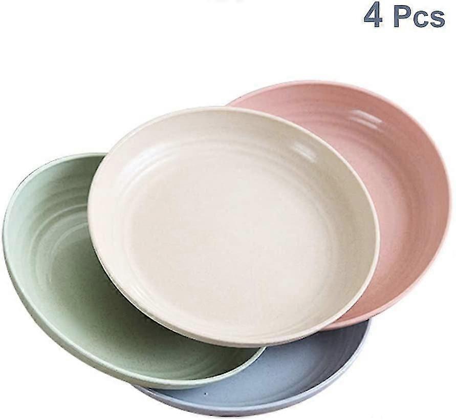 4-piece 19.8cm Wheat Straw Degradable Healthy Dishes Plates, Microwave & Dishwasher Safe, Snack Trays / Plates, Light Bpa-free Salads / Cakes For Kids
