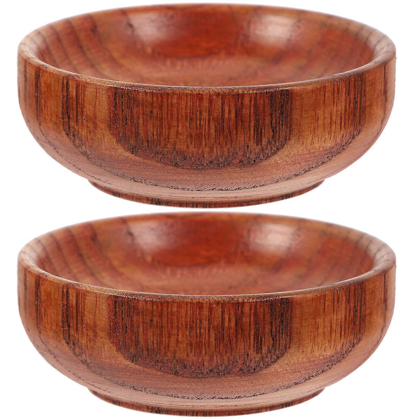 Wooden Coffee Sauce Dishes Set of 2 Perfect for Kitchen Use Stacking Dipping Bowls 4.5 Inches