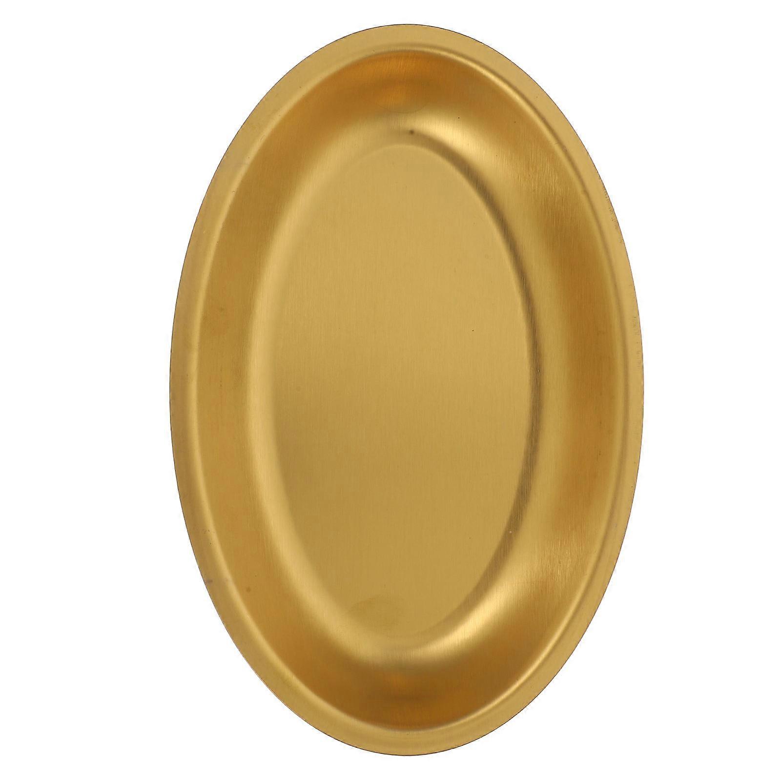 Oval Dinner Plates Stainless Steel Dishes Plate For Serving Appetizers Snacks Fruits Desserts Meats Sushi Golden 21.00X13.50X2.50CM 1Pack