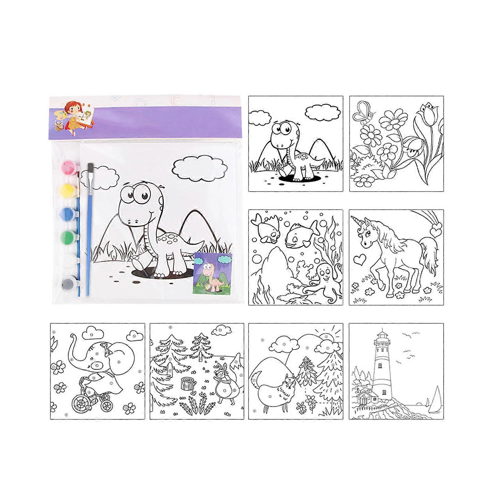 Kids Acrylic Paint Set DIY Digital Oil Painting Cartoon Pattern Canvas Painting Kits for Kids Teenagers Adults 20x20cm / 7.9x7.9in