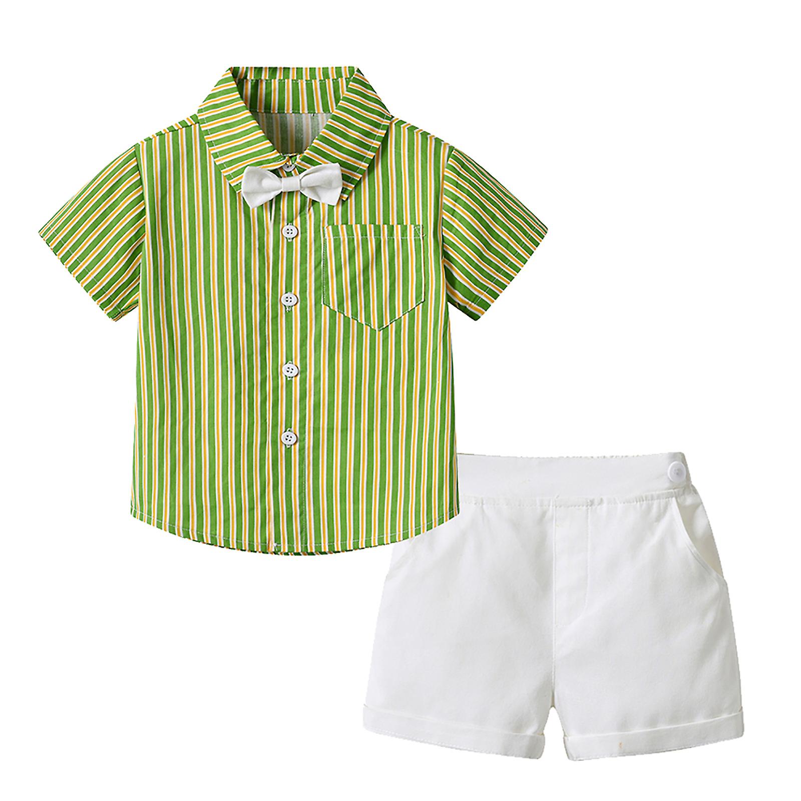 Kids Boys Christening Birthday Party Photography Gentlmen Suit Casual Preppy Style Outfits Short Sleeve Bow Shirt with Shorts