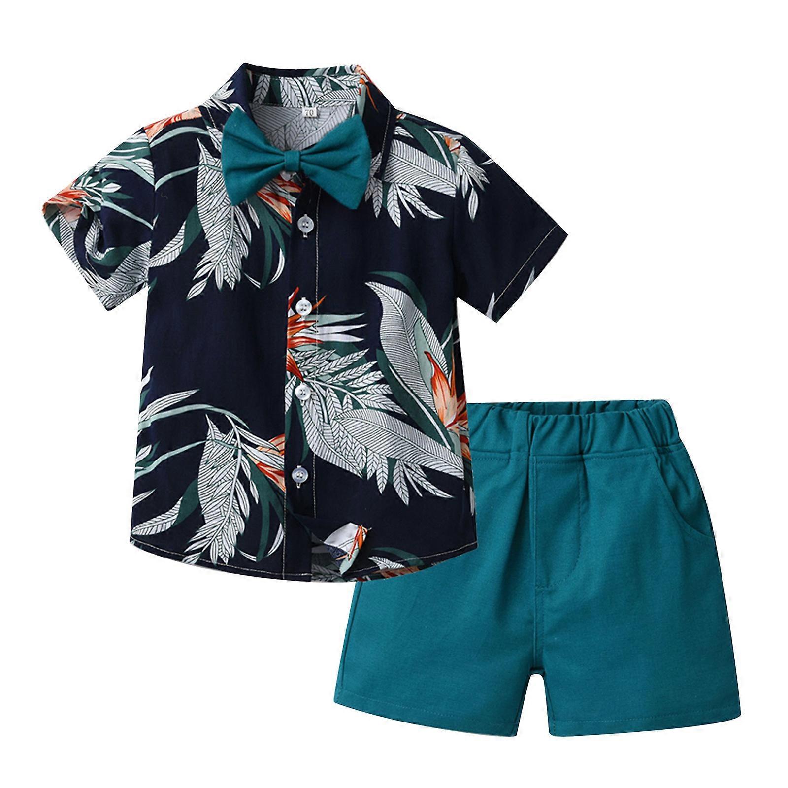 Kids Boys Christening Birthday Party Photography Gentlmen Suit Casual Preppy Style Outfits Short Sleeve Bow Shirt with Shorts