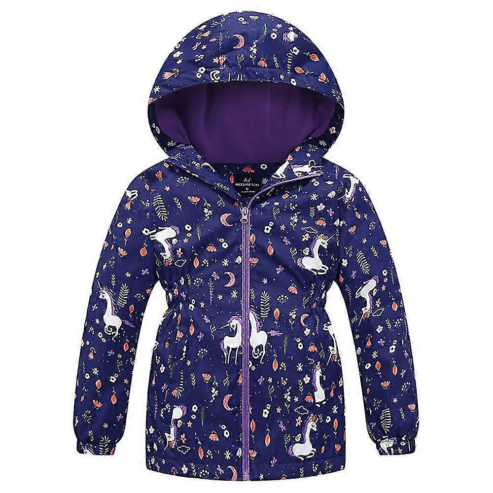 Kids Girls Fleece Lined Windbreaker Hooded Zip Up Jacket Coat Outwear