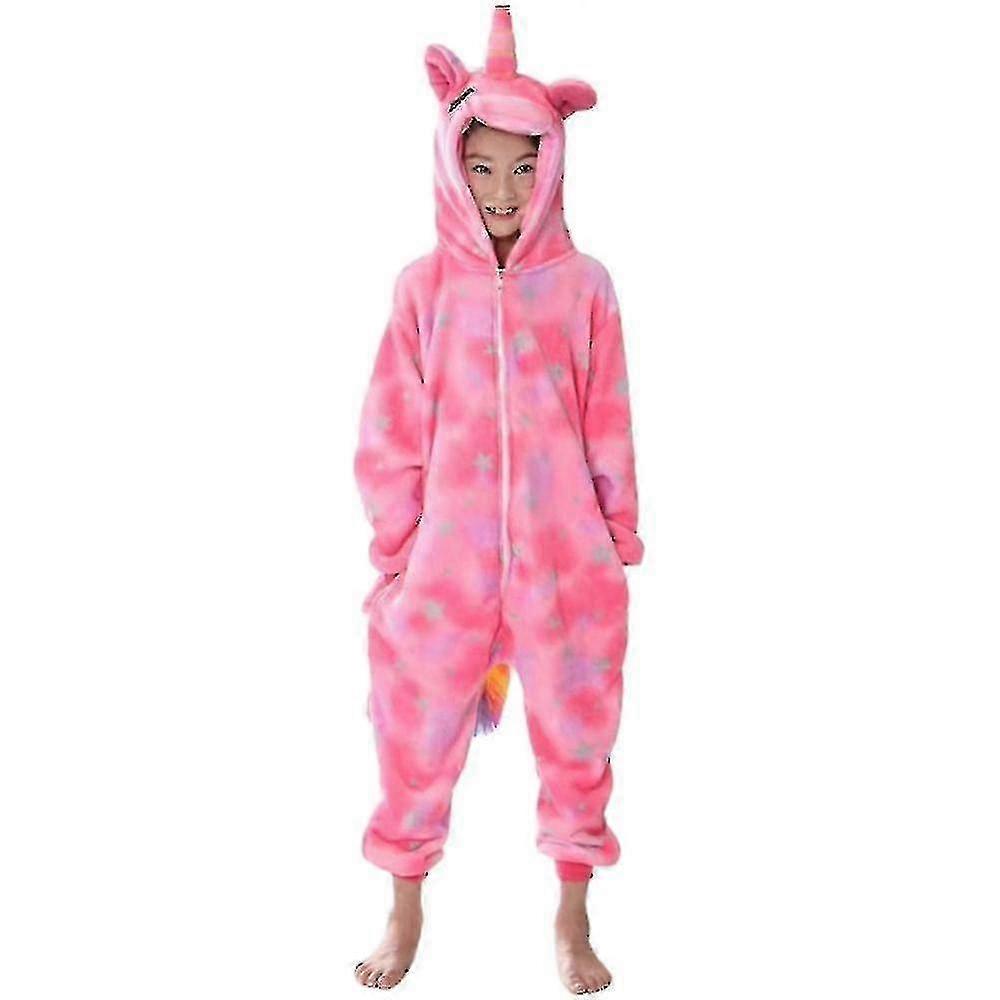 Kids Children Girls One Piece Unicorn Pyjamas Flannel Hooded Jumpsuit Winter Onesies Nightwear