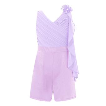 أطفال بنات الباليه الجمباز ثيوب الخامس الرقبة 3D زهرة الساتان بلا أكمام بذلة ملابس الرقص عيد ميلاد حزب أداء زي