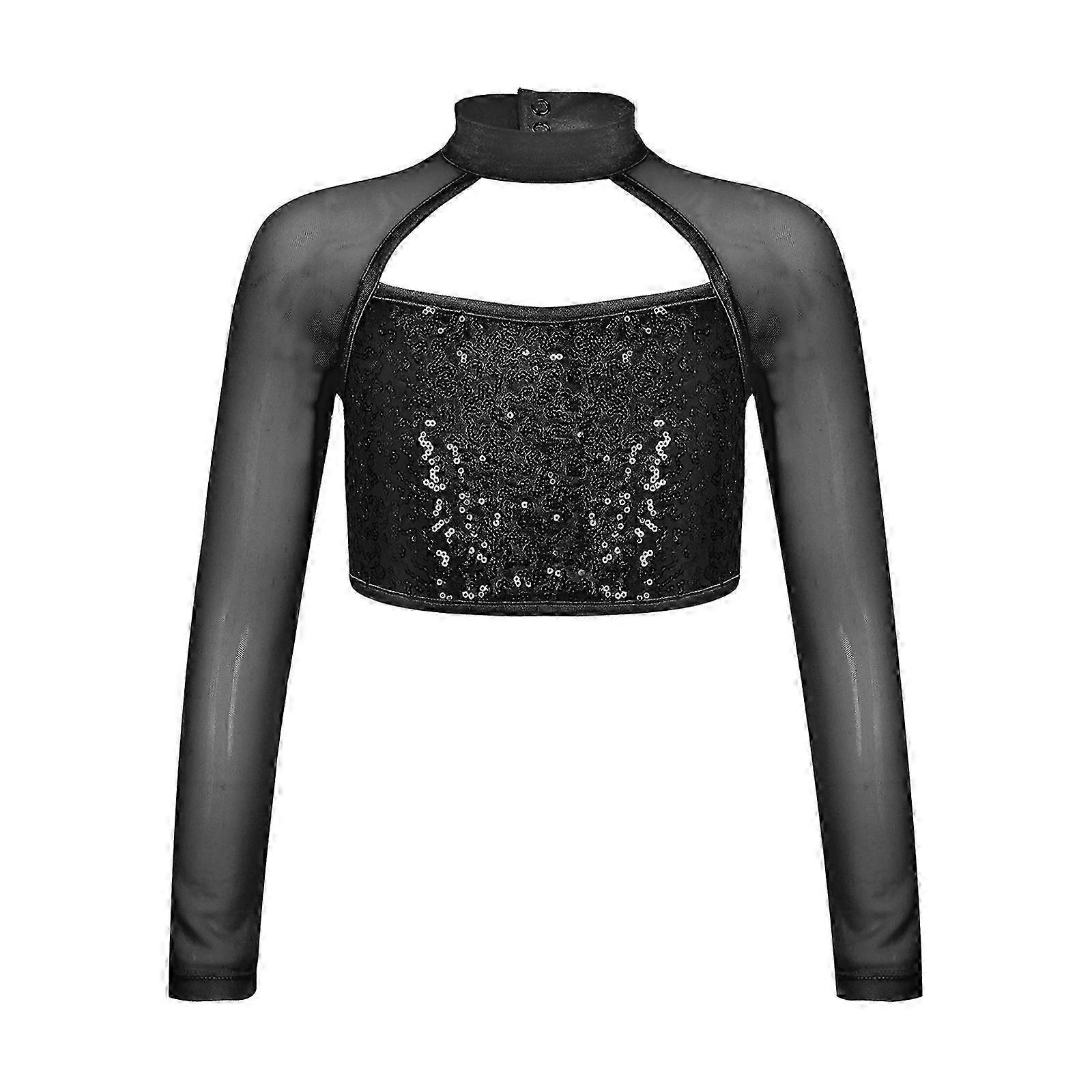 Kids Girls Sequins Crop Tops Jazz Street Dance Tops Stage Performance Dance Shirts Gymnastics Yoga Long Sleeve Hollow Tank Tops