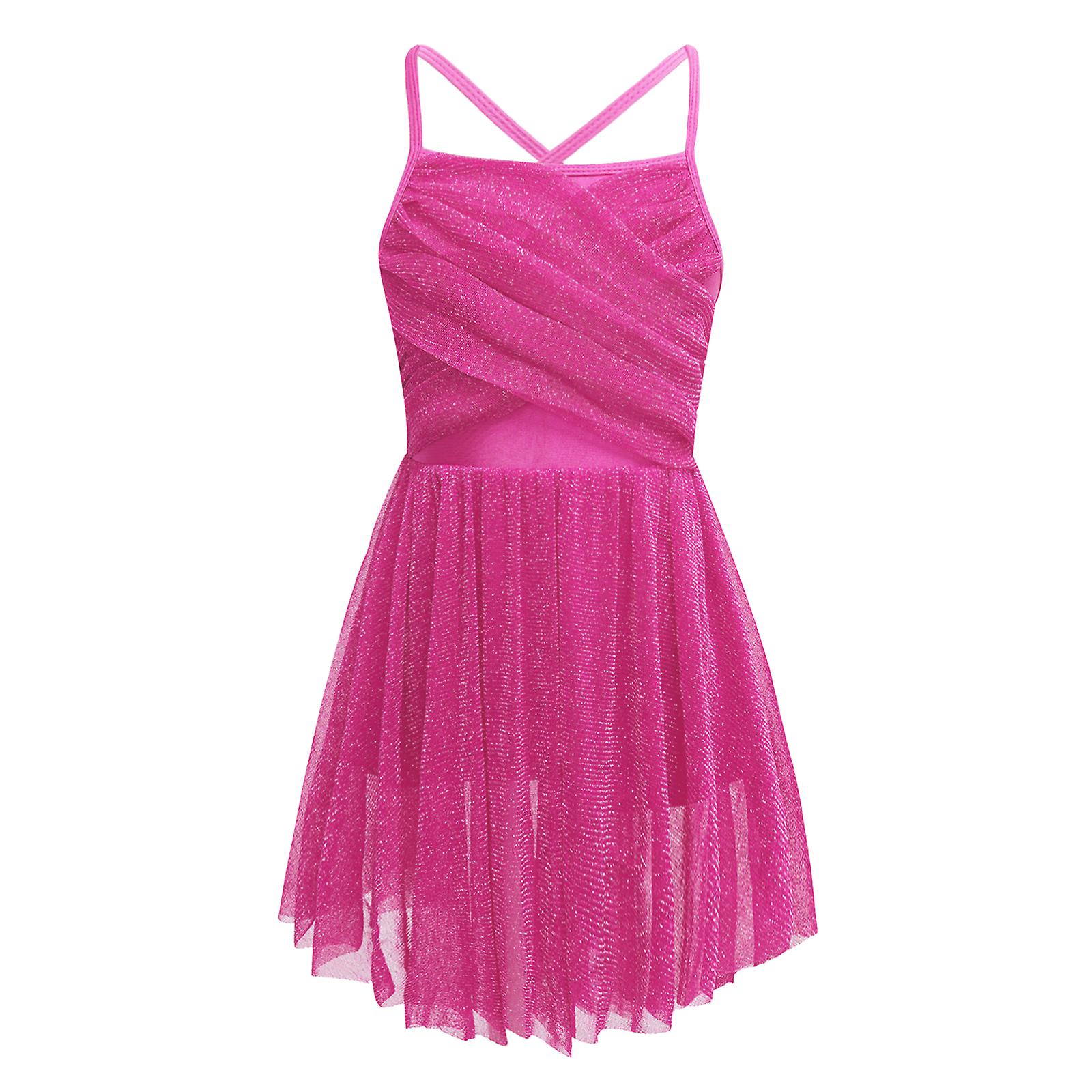 Kids Girls Glittery Tulle Mesh Ballet Dance Tutu Gymnastics Leotard Shiny Lyrical Dance Costumes