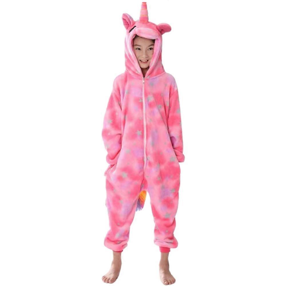 Kids Girls Star Sky Print Flannel Comfy Unicorn Hooded Jumpsuit Cosplay Hoodies Winter Warm Pyjamas Pjs Nightwear
