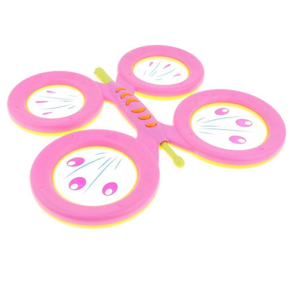 Kids Butterfly Drum Hand Percussion Orff Musical Instrument Toy Rose Red