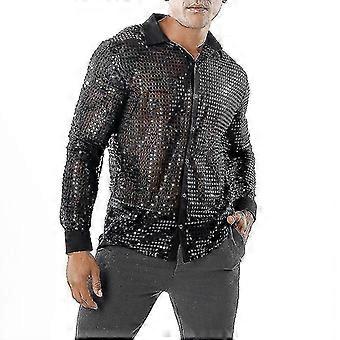 زر للإغلاق. غسل آلي.قمصان قميص ملابس النادي الرجالية ، انظر من خلال شبكة مع تصميم الترتر. أكمام طويلة بأزرار للإغلاق، ياقة مطوية لأسفل، زر أمامي للإغلاق. نسيج شبكي خفيف الوزن وناعم وتنفس ، فضفاض ، لامع وجذاب للغاية. مثالي للأزياء أو الحفلات أو أمسيات النادي أو الأداء أو الأزياء أو الملابس اليومية. يرجى التحقق من الحجم بوضوح قبل الشراء أو غسل اليدين أو الغسالة.